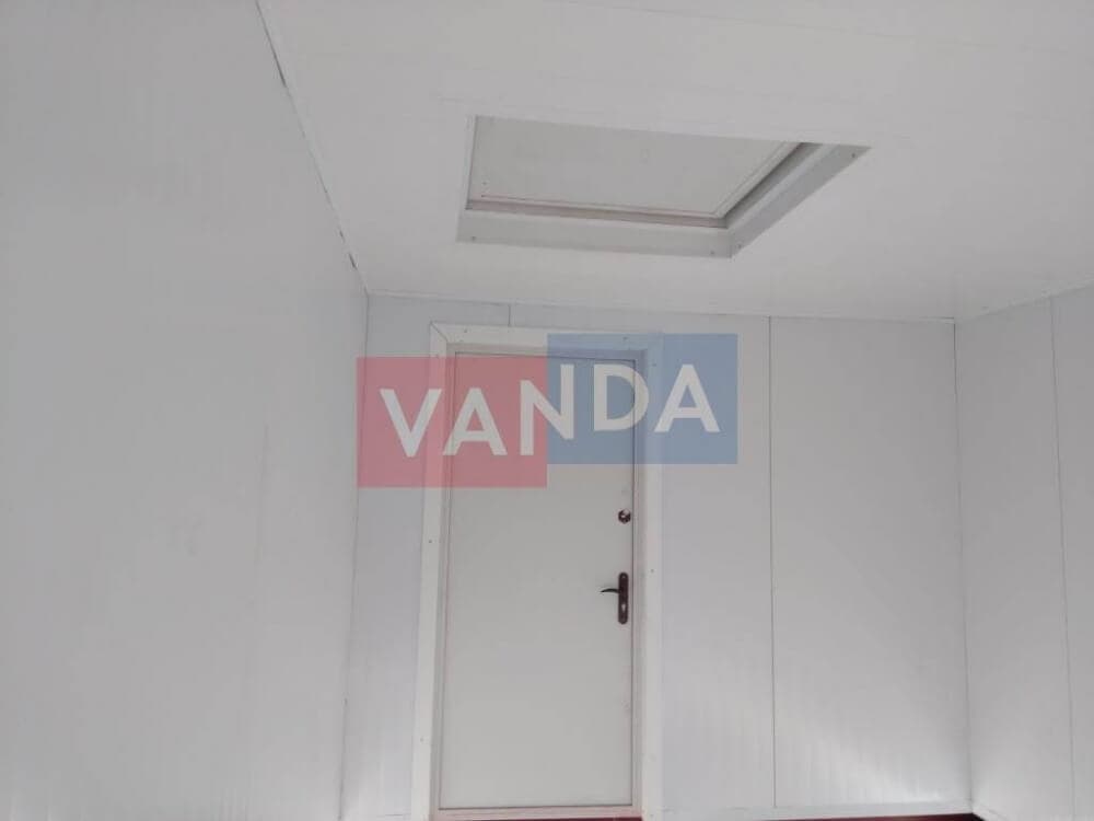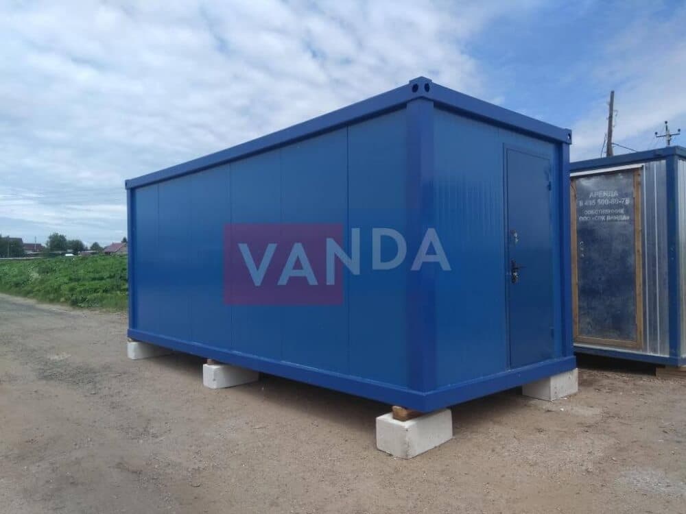 Контейнер состоит из металлического сварного основания. Стены изготовлены из сэндвич-панелей с прокладкой утеплителя. Крыша покрыта крашенным холоднокатаным металлом 1,2 мм. Помещение обустроено пароизоляцией при помощи технической пленки, которая проложена на полу и потолке. Внутренняя облицовка потолка выполнена из ПВХ-панелей, пол – из шпунтованной доски. Вход в помещение оборудован запирающейся металлической дверью.